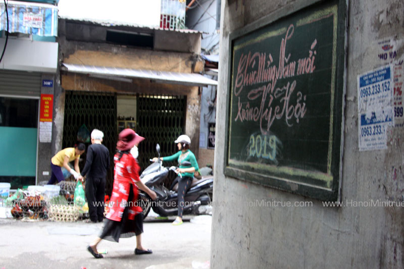According to my experience, locals usually decorate the notice boards about a week before Tet. It means there are many activities preparing for the holiday happen around the boards. Tet, Lunar New Year holiday is the longest and most significant celebration to Vietnamese people. Its importance is like Christmas to westerners. The closer to Tet, the busier people are. Everyone seems to be in a hurry shopping, cooking, cleaning etc.