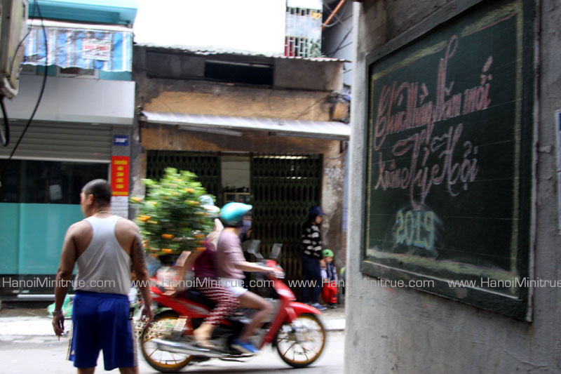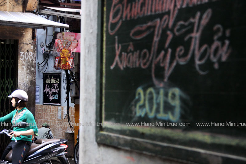 These scenes are heaven for street photography lovers. Taking photographs of the boards right before Tet has a unique attraction compared to doing so during the holiday. However, traffic in Hanoi these days would be a big challenge. Furthermore, even the most leisured photographers should be occupied with traveling and shopping like others. Therefore, the photos of freshly decorated boards with the vibrant life surrounding are often rare.