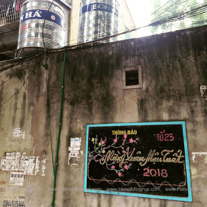 The board in the common yard of an old apartment complex (officially named Kim Lien Dormitory) in Luong Dinh Cua street, Dong Da district. In this photo, you could see few stainless steel water tanks. It’s also a typical image of Vietnam, especially when you watch my country from above.
