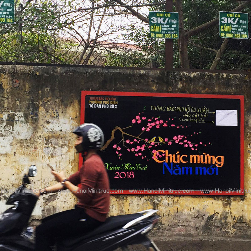 Last year, I came up with the idea documenting the public notice boards of Hanoi during Lunar New Year holidays. Due to lack of experience and time, I only discovered about 40 boards scattered throughout the inner districts. Most of times, I took photos in a rush while my own business was pending nearby.